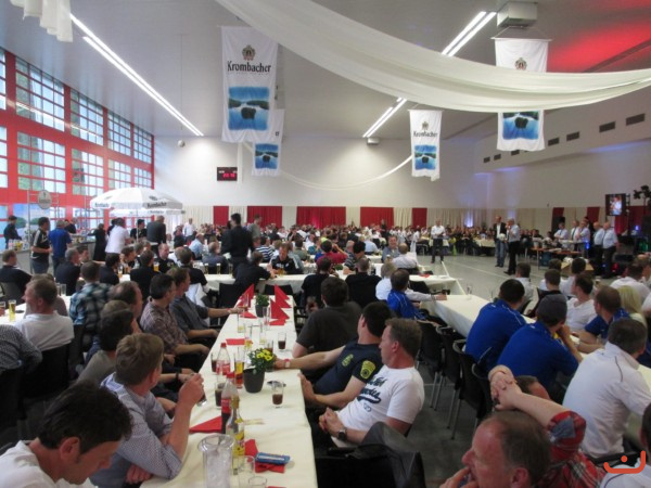 Freie Turner 1. Altherren mit den anderen Mannschaften in der Karl-Laue-Halle bei der Siegerehrung (Sieger TSV Helmstedt, Freie Turner 7. Platz) bei der 16. Krombacher Ü32.-Niedersachsenmeisterschaft am 04.Mai 2013 in Barsinghausen und die Mega-Schle.... Kuhbar.