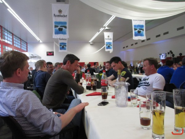 Freie Turner 1. Altherren mit den anderen Mannschaften in der Karl-Laue-Halle bei der Siegerehrung (Sieger TSV Helmstedt, Freie Turner 7. Platz) bei der 16. Krombacher Ü32.-Niedersachsenmeisterschaft am 04.Mai 2013 in Barsinghausen und die Mega-Schle.... Kuhbar.