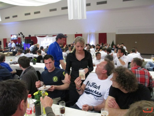 Freie Turner 1. Altherren mit den anderen Mannschaften in der Karl-Laue-Halle bei der Siegerehrung (Sieger TSV Helmstedt, Freie Turner 7. Platz) bei der 16. Krombacher Ü32.-Niedersachsenmeisterschaft am 04.Mai 2013 in Barsinghausen und die Mega-Schle.... Kuhbar.