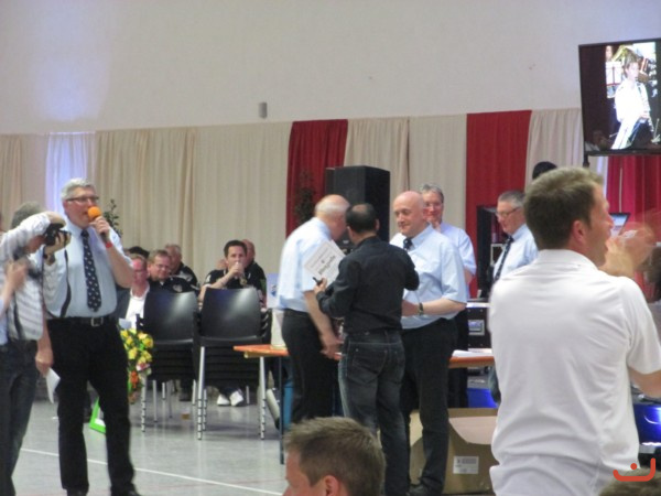 Freie Turner 1. Altherren mit den anderen Mannschaften in der Karl-Laue-Halle bei der Siegerehrung (Sieger TSV Helmstedt, Freie Turner 7. Platz) bei der 16. Krombacher Ü32.-Niedersachsenmeisterschaft am 04.Mai 2013 in Barsinghausen und die Mega-Schle.... Kuhbar.