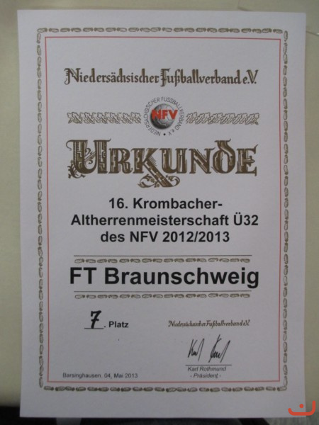 Freie Turner 1. Altherren mit den anderen Mannschaften in der Karl-Laue-Halle bei der Siegerehrung (Sieger TSV Helmstedt, Freie Turner 7. Platz) bei der 16. Krombacher Ü32.-Niedersachsenmeisterschaft am 04.Mai 2013 in Barsinghausen und die Mega-Schle.... Kuhbar.