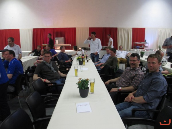 Freie Turner 1. Altherren mit den anderen Mannschaften in der Karl-Laue-Halle bei der Siegerehrung (Sieger TSV Helmstedt, Freie Turner 7. Platz) bei der 16. Krombacher Ü32.-Niedersachsenmeisterschaft am 04.Mai 2013 in Barsinghausen und die Mega-Schle.... Kuhbar.