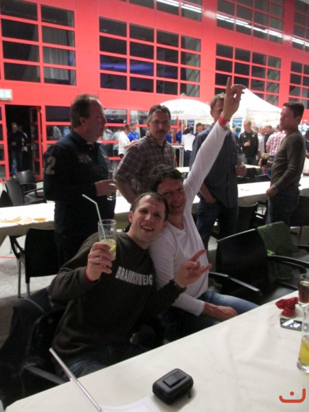 Freie Turner 1. Altherren mit den anderen Mannschaften in der Karl-Laue-Halle bei der Siegerehrung (Sieger TSV Helmstedt, Freie Turner 7. Platz) bei der 16. Krombacher Ü32.-Niedersachsenmeisterschaft am 04.Mai 2013 in Barsinghausen und die Mega-Schle.... Kuhbar.