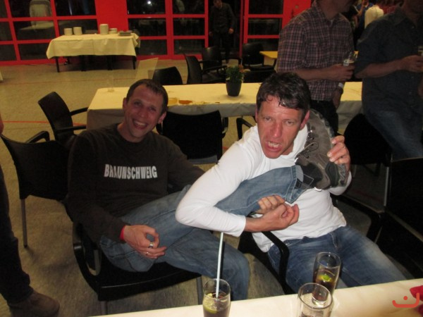 Freie Turner 1. Altherren mit den anderen Mannschaften in der Karl-Laue-Halle bei der Siegerehrung (Sieger TSV Helmstedt, Freie Turner 7. Platz) bei der 16. Krombacher Ü32.-Niedersachsenmeisterschaft am 04.Mai 2013 in Barsinghausen und die Mega-Schle.... Kuhbar.