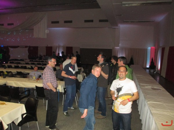 Freie Turner 1. Altherren mit den anderen Mannschaften in der Karl-Laue-Halle bei der Siegerehrung (Sieger TSV Helmstedt, Freie Turner 7. Platz) bei der 16. Krombacher Ü32.-Niedersachsenmeisterschaft am 04.Mai 2013 in Barsinghausen und die Mega-Schle.... Kuhbar.