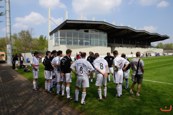 Freie Turner 1. Altherren in dem letzten Vorrundenspiel gegen den TSV Helmstedt (Endstand 0:1 für Helmstedt durch ein Abseitstor)bei der 16. Krombacher Ü32.-Niedersachsenmeisterschaft am 04.Mai 2013 in Barsinghausen.