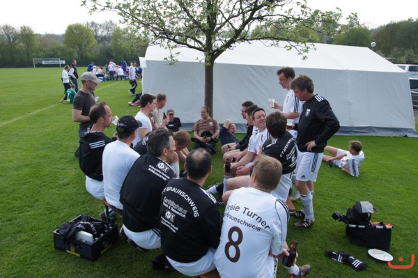 Freie Turner 1. Altherren nach dem Ausscheiden im Viertelfinale in gemütlicher Runde bei der 16. Krombacher Ü32.-Niedersachsenmeisterschaft am 04.Mai 2013 in Barsinghausen.